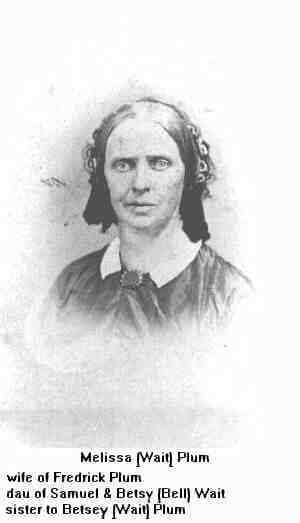 Melissa married Fredrick Plum, son of Comfort Plum and Betsey Black, on 16 Apr 1829 in Aurora, Portage Co., OH. (Fredrick Plum was born on 16 Dec 1802,13 died on 12 Oct 1883 in Streetsboro, Portage Co., OH 13 and was buried in Streetsboro, Portage Co., OH, Evergreen Cem. 13.)