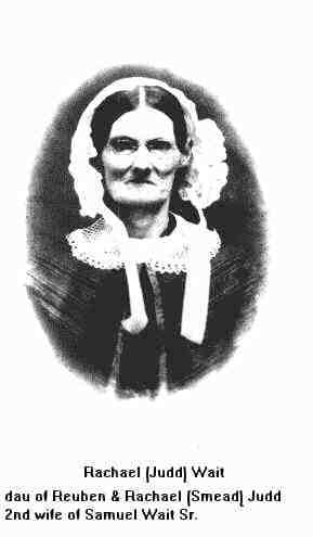Rachael married Samuel Wait Sr., son of Jonathan Wait and Margaret Smith, on 24 Sep 1815 in Chester, Hampden Co., MA.141 (Samuel Wait Sr. was born on 26 Mar 1779 in Chester, Hampden Co., MA,142 died on 30 Oct 1862 in Streetsboro, Portage Co., OH and was buried in Streetsboro, Portage Co., OH, Evergreen Cem..)