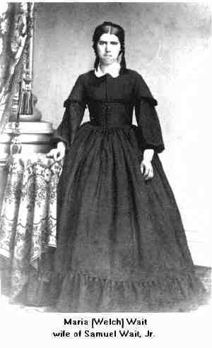 Maria married Samuel Wait Jr., son of Samuel Wait Sr. and Rachael Judd, on 22 Apr 1855 in , Portage Co., OH. (Samuel Wait Jr. was born on 21 Sep 1816 in Chester, Hampden Co., MA, died on 18 Mar 1895 and was buried in Streetsboro, Portage Co., OH, Evergreen Cem..) |
